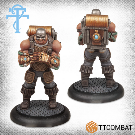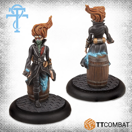 The Doctor of the Firmament leads this box, traversing through a barrel, she looks to be directing her forces. Assisting her is an Apprentice Doctor, armed with a tuning fork to ensure the Traversal Slates are tuned to distort matter to the correct size.