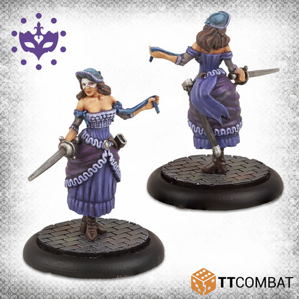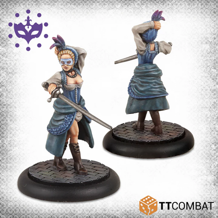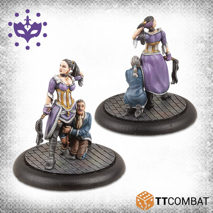 A Submissive Noble clings to the leg of his mistress, a particular kind of Cortigiane that whips those around her into shape. Two Cortigiane‚¬„¢s round out this box, these companions will follow their noble patrons into combat, deftly striking down foes with their Rapiers, assuming the coin is right.