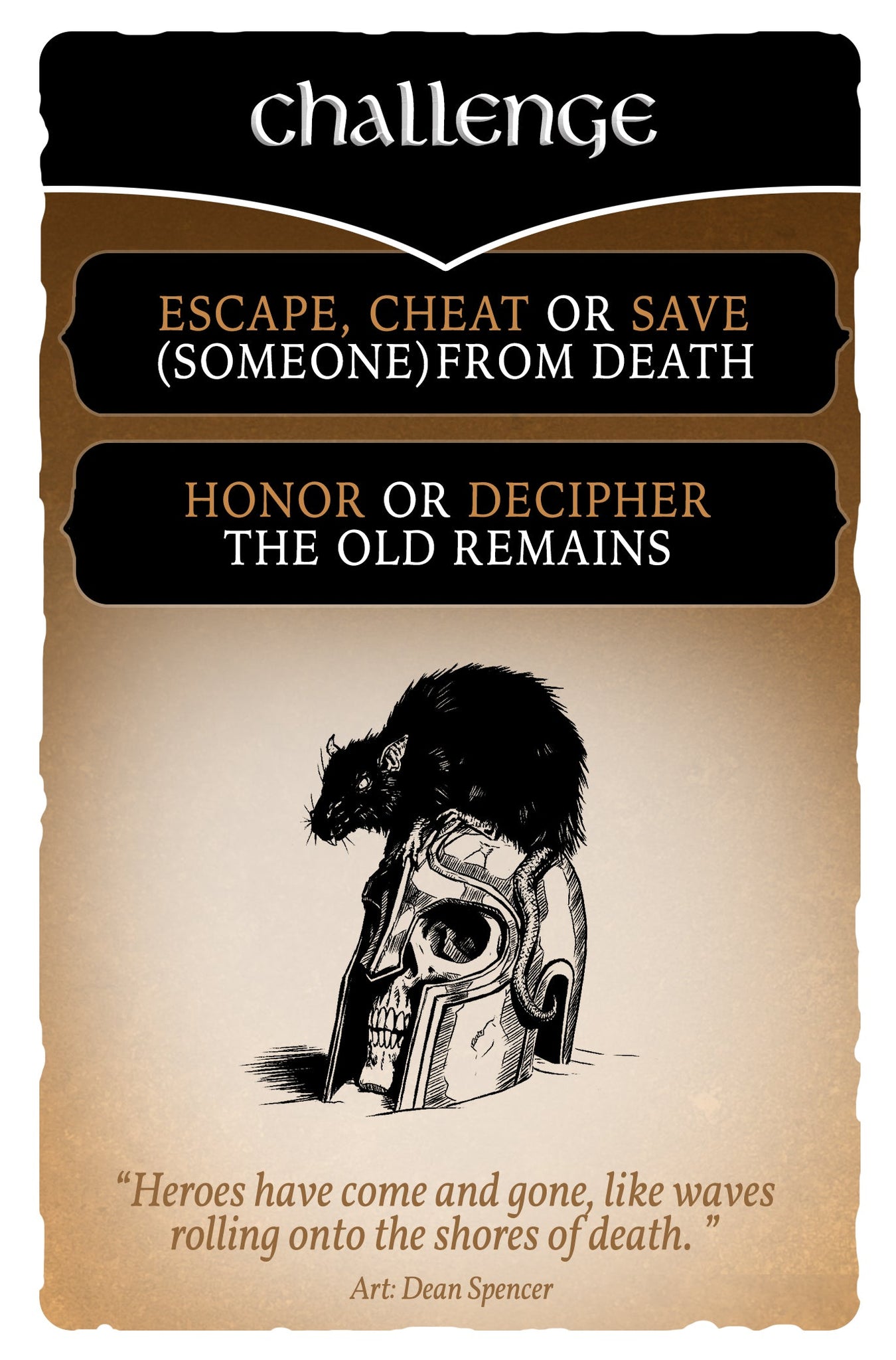 Challenge yourself (or the whole table!) with narrative prompts designed to reward player creativity and enhance your campaign story.