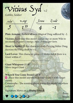 Contains: 1x Vicious Syd Miniature, Stat Card and Base, in a blister pack.