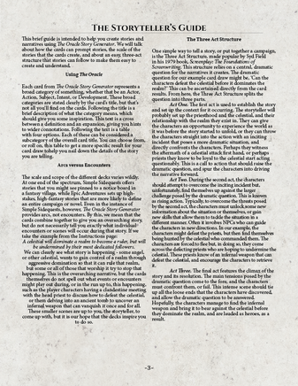 The Oracle Story Generator is a tool for game masters, storytellers, and writers looking for inspiration when creating fantastic adventures. Its simple and dynamic design allows for maximum versatility and detail in a minimal number of cards.