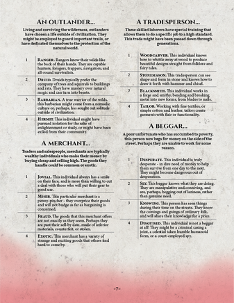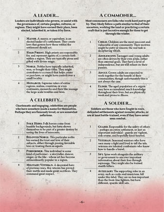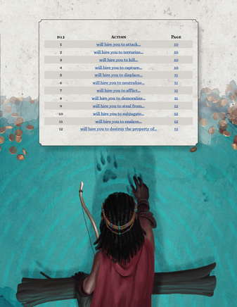 Each deck has a theme. Themes include: Contracts & Bounties, Epic Adventures, Political Intrigue, Relics & Artifacts, and Simple Sidequests. Cards within these decks are broken out into Actors, Actions, Subjects, Intents, and Developments.