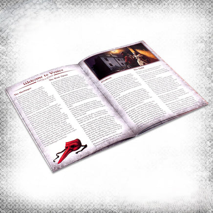 This 48-page softback rulebook is an easy way to get stuck into the world of Carnevale. It contains an introduction to the game, Venice itself, and to each of the factions fighting for control of the City of Canals. Then we get stuck right into the rules! Although a smaller format than the full size book, this volume contains everything you need to start playing, including the basics, actions like jumping and drowning, Equipment and Agendas. It even contains 5 scenarios as part of the Winds of Fate campaign.