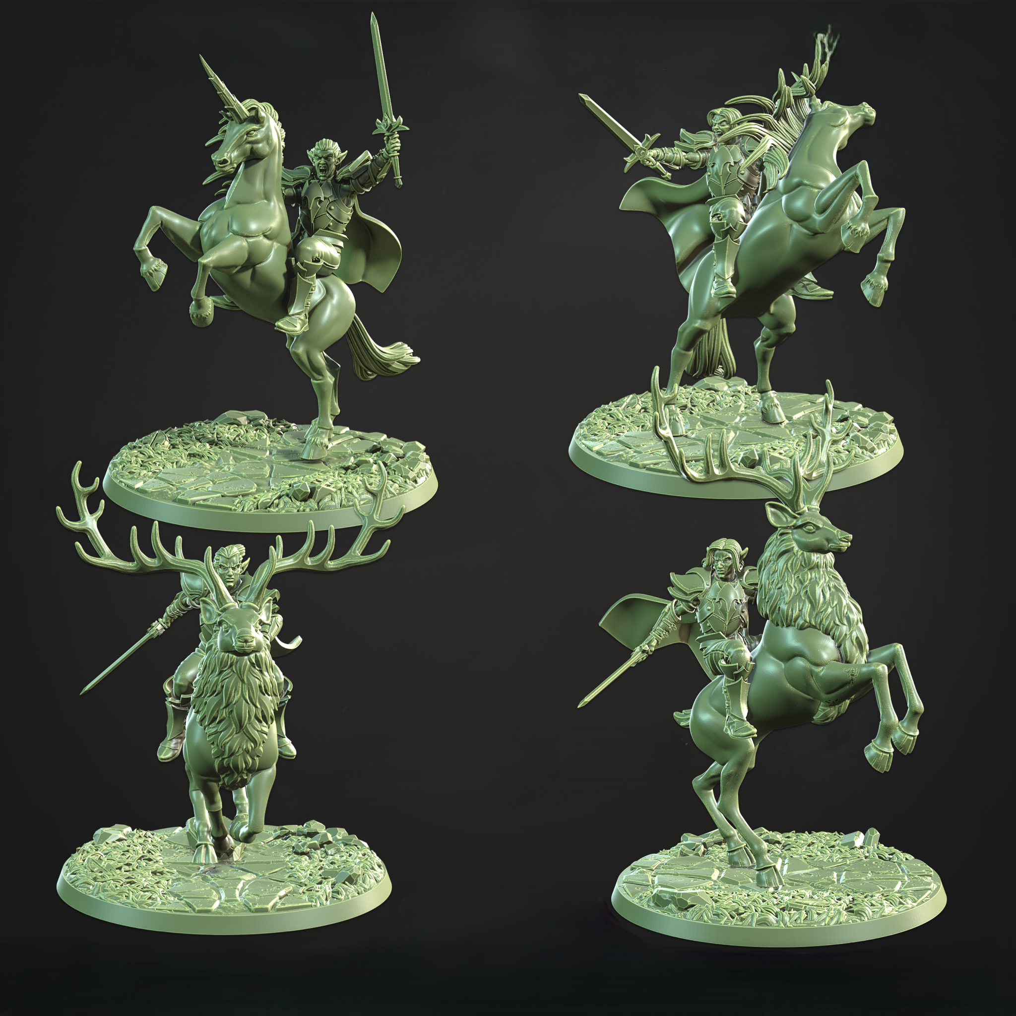 CastnPlay #829 Elven Mystwood Riders (4 Miniatures) - no Base - 32mm