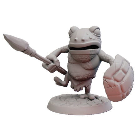 Zoontails - DHZ1024 - Frogfolk with Shield - 35mm - Resin - As shown With Base
