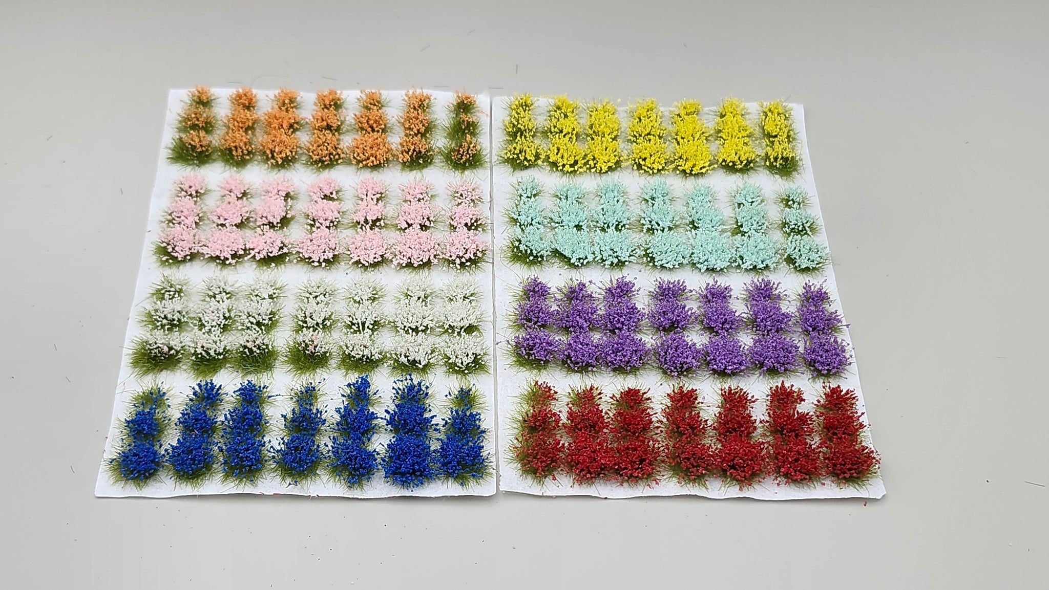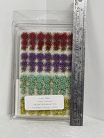 Flower Samplers: Containing two sheets of tufts that have 168 total tufts per pack in small, medium, and large size that are roughly 4, 6, and 9mm diameter at the base. These samplers each contain 8 different flower colors.
