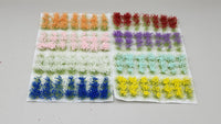 Flower Samplers: Containing two sheets of tufts that have 168 total tufts per pack in small, medium, and large size that are roughly 4, 6, and 9mm diameter at the base. These samplers each contain 8 different flower colors.
