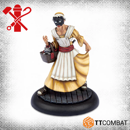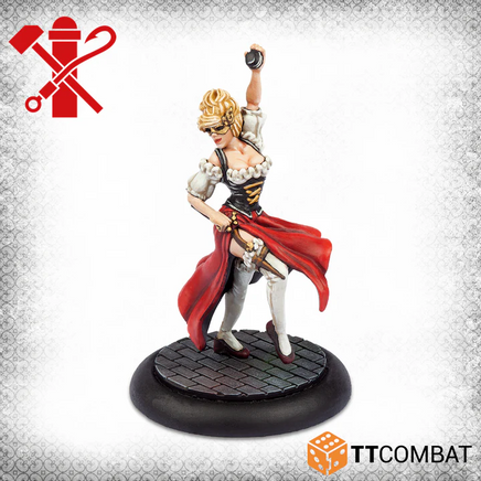 This box contains a complete gang for Carnevale. A Madame leads the charge with a massive reserve of Command Points, the two Harlots can assassinate anyone when there back is turned, and the Escort provides some extra muscle. Finally the Dancer is able to communicate in silence with her peers, organising the gang from safety.