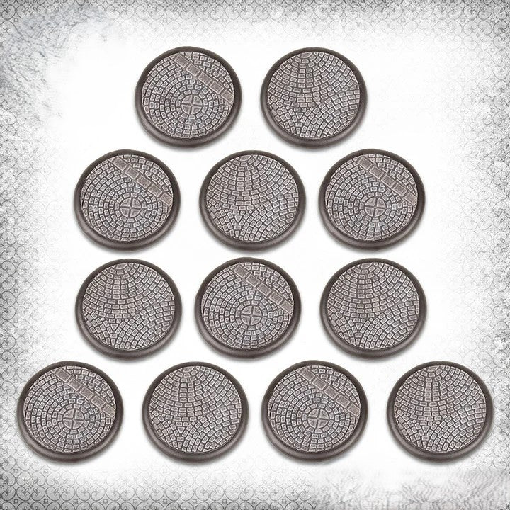 If you'd like to make your miniatures a little fancier, start from the ground up! This pack contains 12 detailed plaza bases, so now your miniatures can match your gaming space!