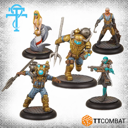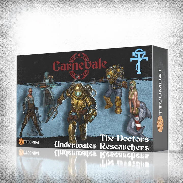 This box is led by a Doctor of the Tides sporting a huge diving suit, powered by a madness crystal and wielding a trident capable of skewering any sea creature they come across. Assisting the Doctor is a Marine Biologist, a specialist in Rashaar physiology, sporting gills and fins to traverse the depths faster.