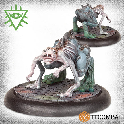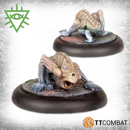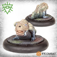 This box provides dedicated leadership for Feral Rashaar gangs, though it can be used to lead other Rashaar gangs. A Partuul Matriarch is the wrathful mother of Crybabies and can spawn them at will. The Bounding Telchine is fragile but can jump far enough to make it far over obstacles and characters in a single leap. The trio of Crybabies can be added as part of your gang, or be held back and spawned by the Partuul Matriarch. Use them to distract enemy gangs, or feed them to your Feral Rashaar and incense their Matriarch.