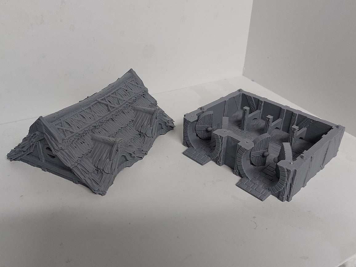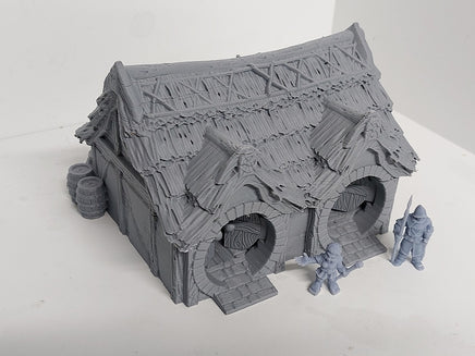 DRHV001 Consists of: 1 - 28mm Stables in 6 pieces. Miniatures & Trees are not included but are shown for size reference, Halflings & Human Guard in 28mm scale.