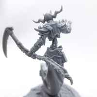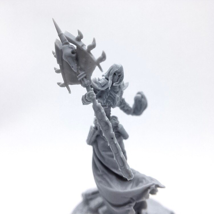 The kit contains 3 different head options (helmet, crown, and hood), 7 different weapons options (scythe, double-edged wand, staff, censer, empty hand, soul arrow, soul orb), 2 one-inch bases (one basic black and one branded).